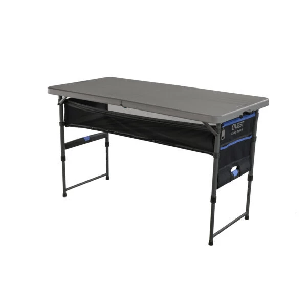 Sturdy, lightweight and super practical – the Quest 4 Foot Fold in Half Table is the ultimate addition to your gear set up. Featuring super-easy single-handed height adjustment mechanism, it goes from low coffee table height right through to preparation table height of 86cm. When it comes to storage we’ve got you covered, with an under-table storage hammock and side storage organiser. Both do not need to be removed so setup and pack down is a breeze. The tabletop is blow moulded and UV protected to prevent damage from the sun’s rays. Set your table to your height with the Quest 4 Foot Fold in Half Table.